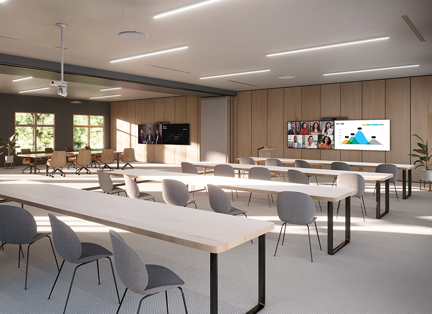 Large spaces, boardrooms, training rooms, auditoriums, divisible rooms, and specialist AV scenarios. Workspace |