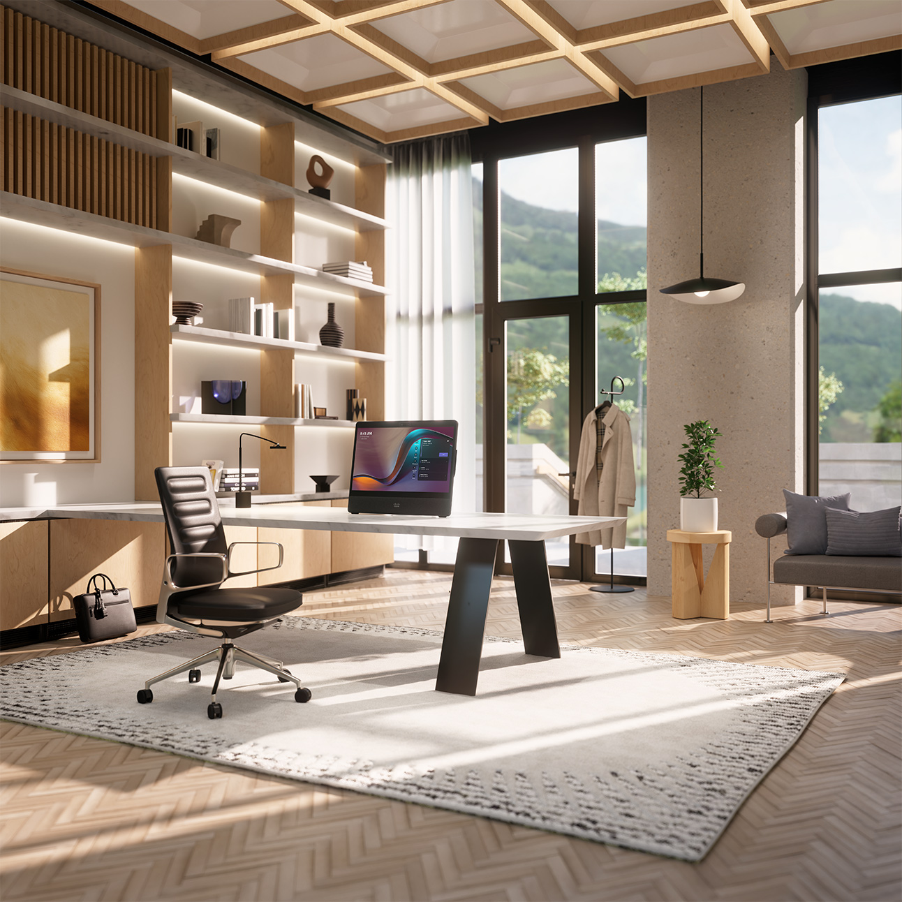 Join the next meeting with a single touch and get instant access to intelligent features and smart controls in or out of calls. Adjust camera and audio settings, enable AI noise removal, and control room peripherals with a single swipe.