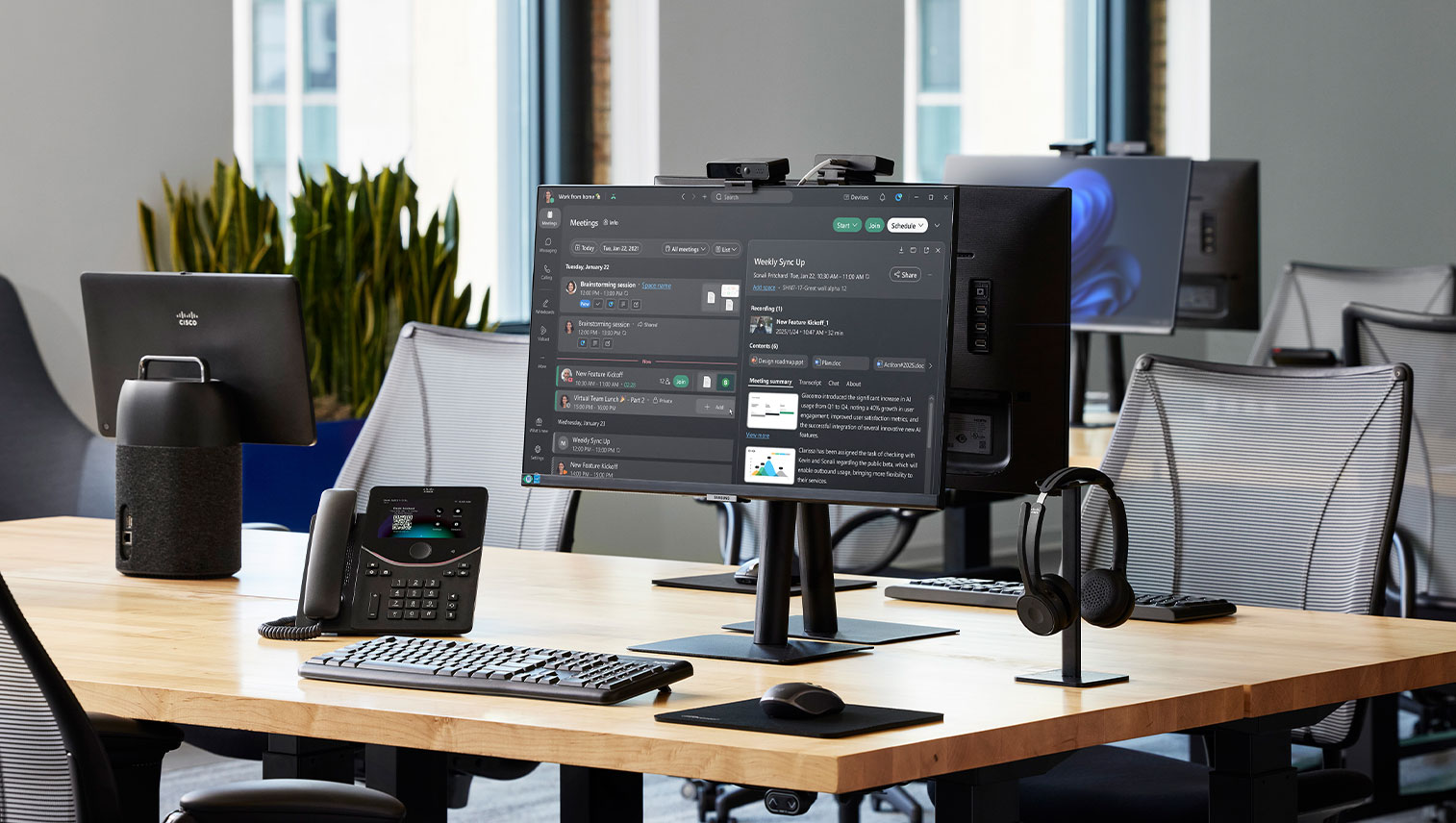 Get the best audio experience with premium speakers and AI noise removal. On a busy day in the office, the Cisco Desk and Desk Phone 9800 Series devices can be paired with a professional, enterprise-grade Cisco Headset for an optimal audio experience.