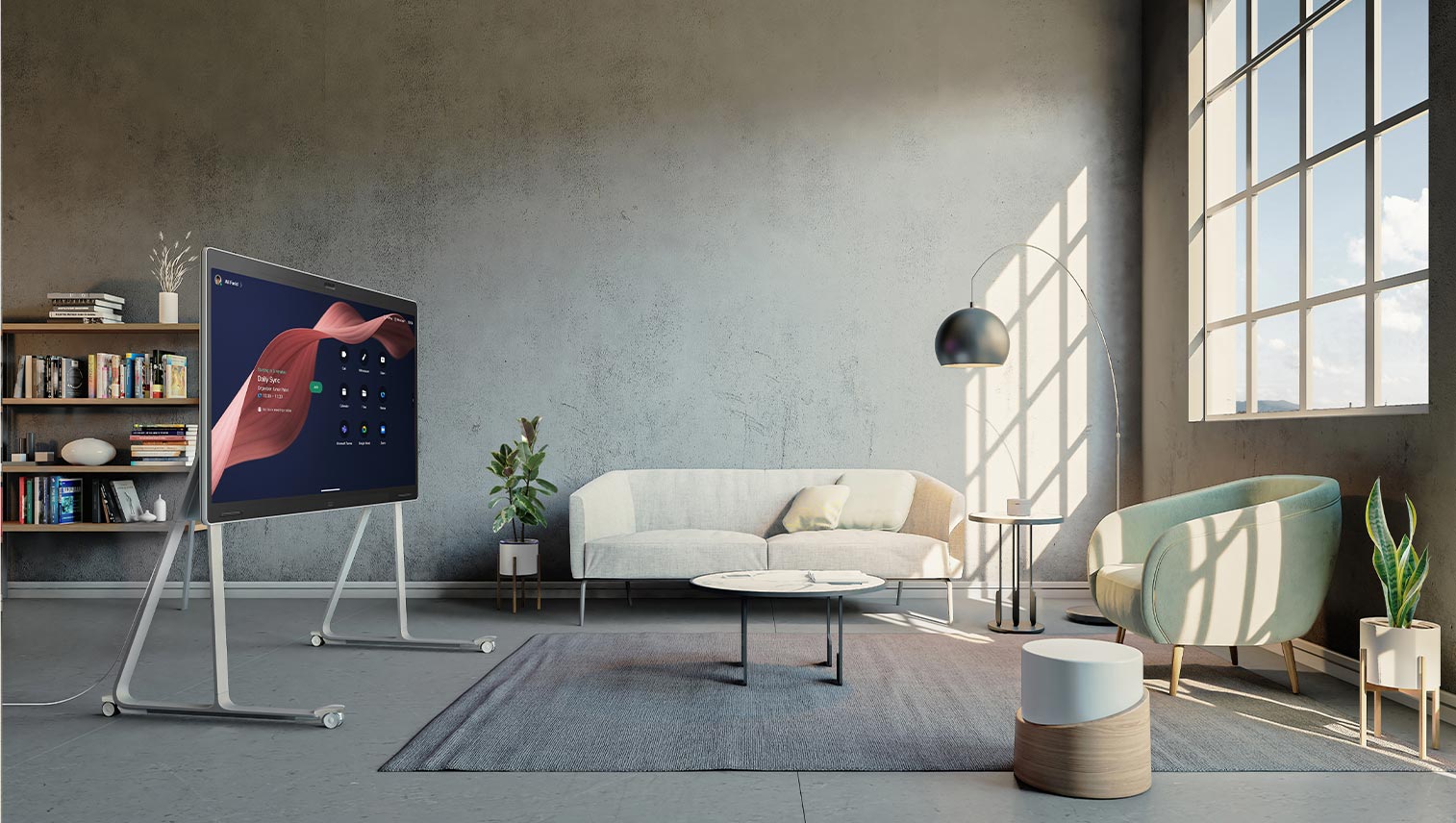 Floor and wall mount options, a 55” integrated touch screen, casual soft furniture and ample space around the device allows in-room participants to ideate seamlessly.