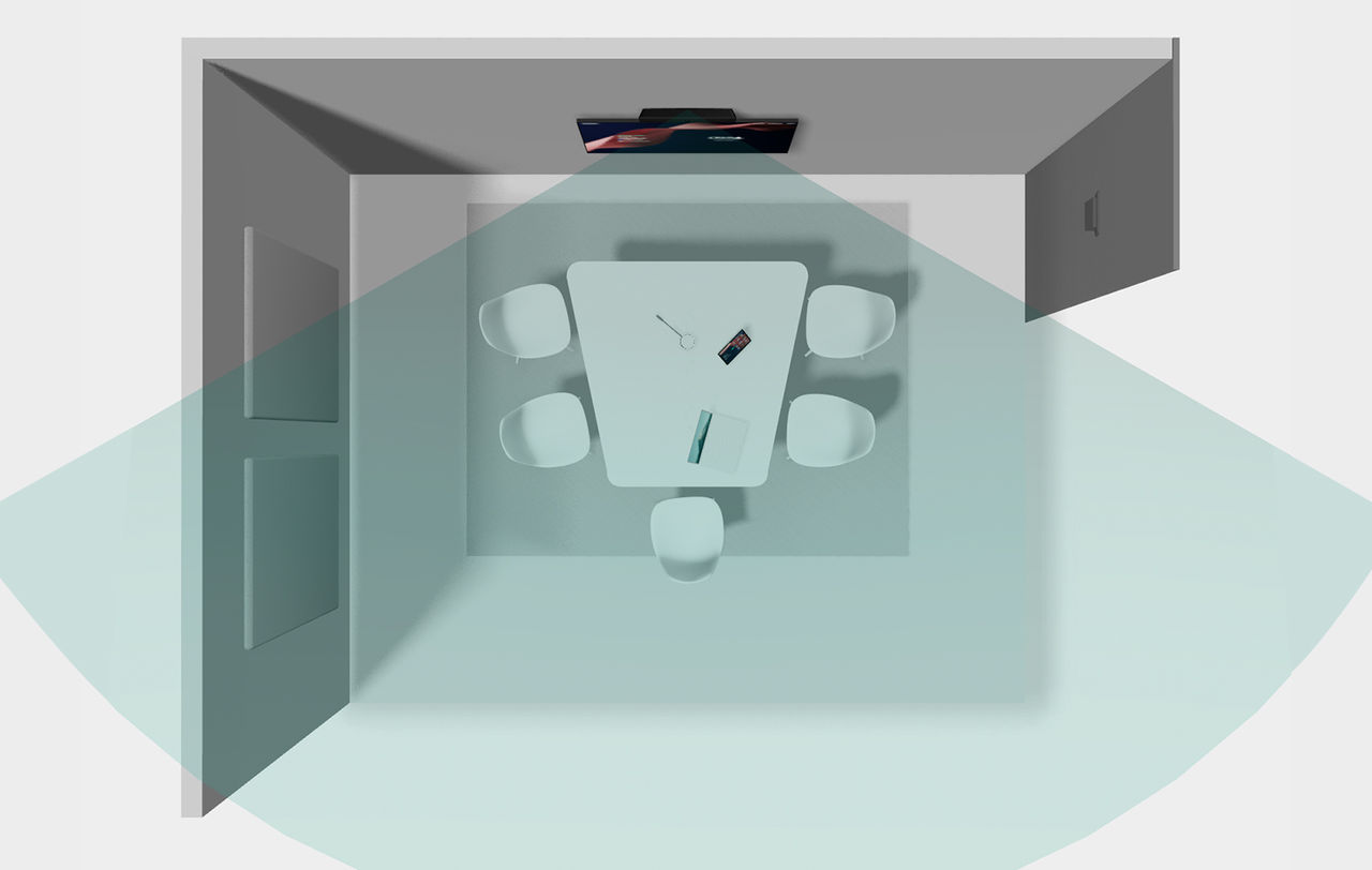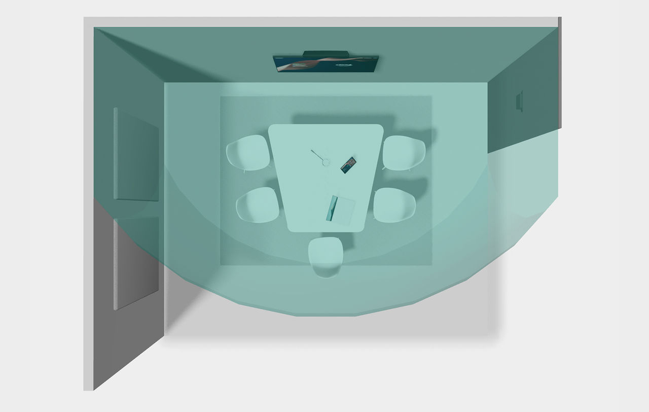 Featuring a wide-field-of-view camera and the power of AI, all participants in the room are equally represented in the meeting while virtual meeting zone helps to avoid framing passers-by in glass-walled environments.