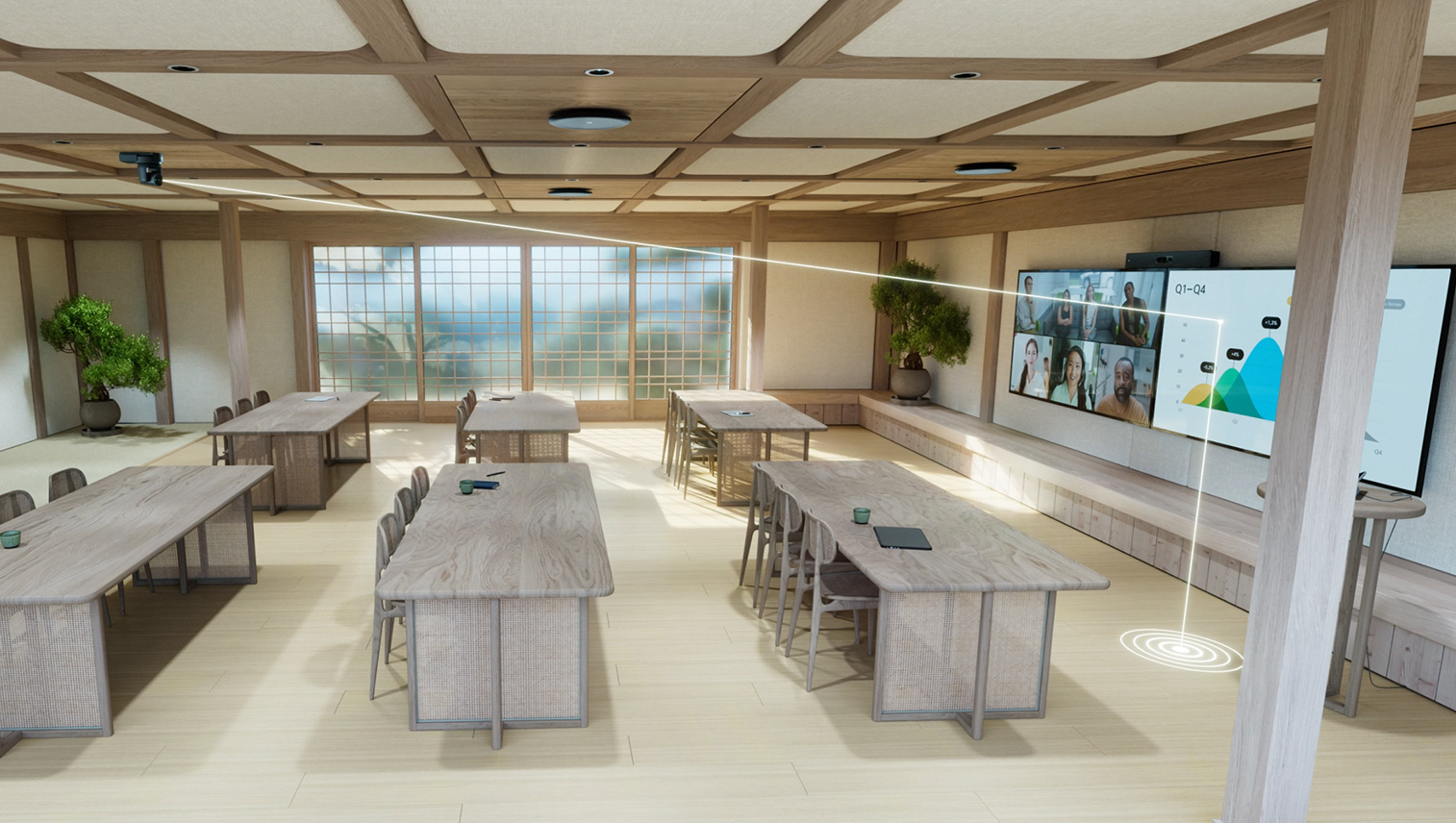 With the latest generation of flexible, plug-and-play IP-based directional microphones, both the presenters and the in-room audience can be confident that their voices are heard clearly. Eight adaptive microphone beams work together with advanced meeting room AI to automatically follow training room dynamics and pick up high-fidelity voice from the active speakers while blocking out excess noise from other parts of the room. And thanks to adaptive beamforming, there’s no need to reconfigure the microphones manually when the table arrangement or room furniture design changes.